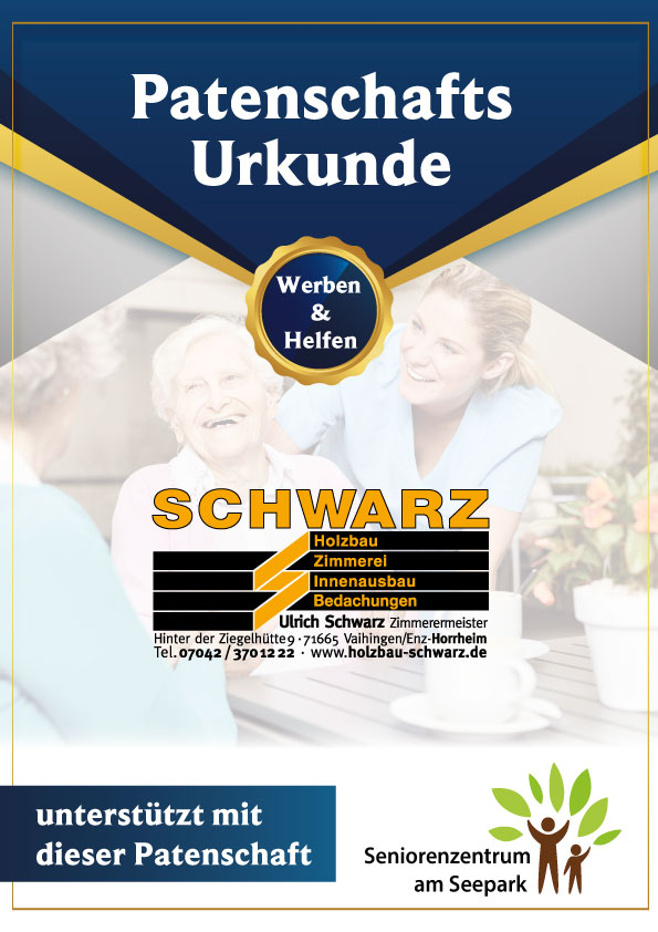 Als Sponsor/Unterstützer der Seniorenheime erhält jeder Werbekunden eine repräsentative und exklusive Patenschaftsurkunde.