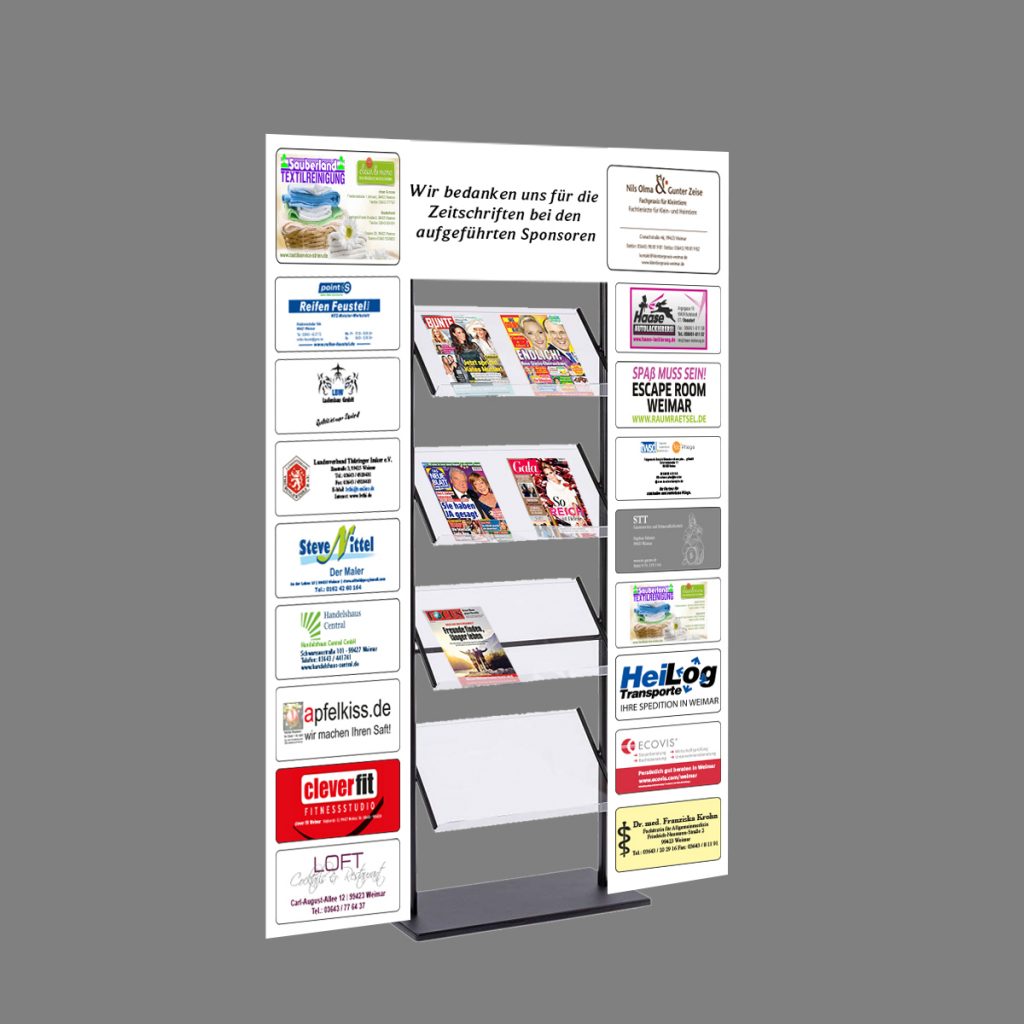 Für die Unterstützung erhalten die Werbekunden eine Werbefläche auf einem Zeitungsständer der gut sichtbar im Seniorenheim aufgestellt wird.